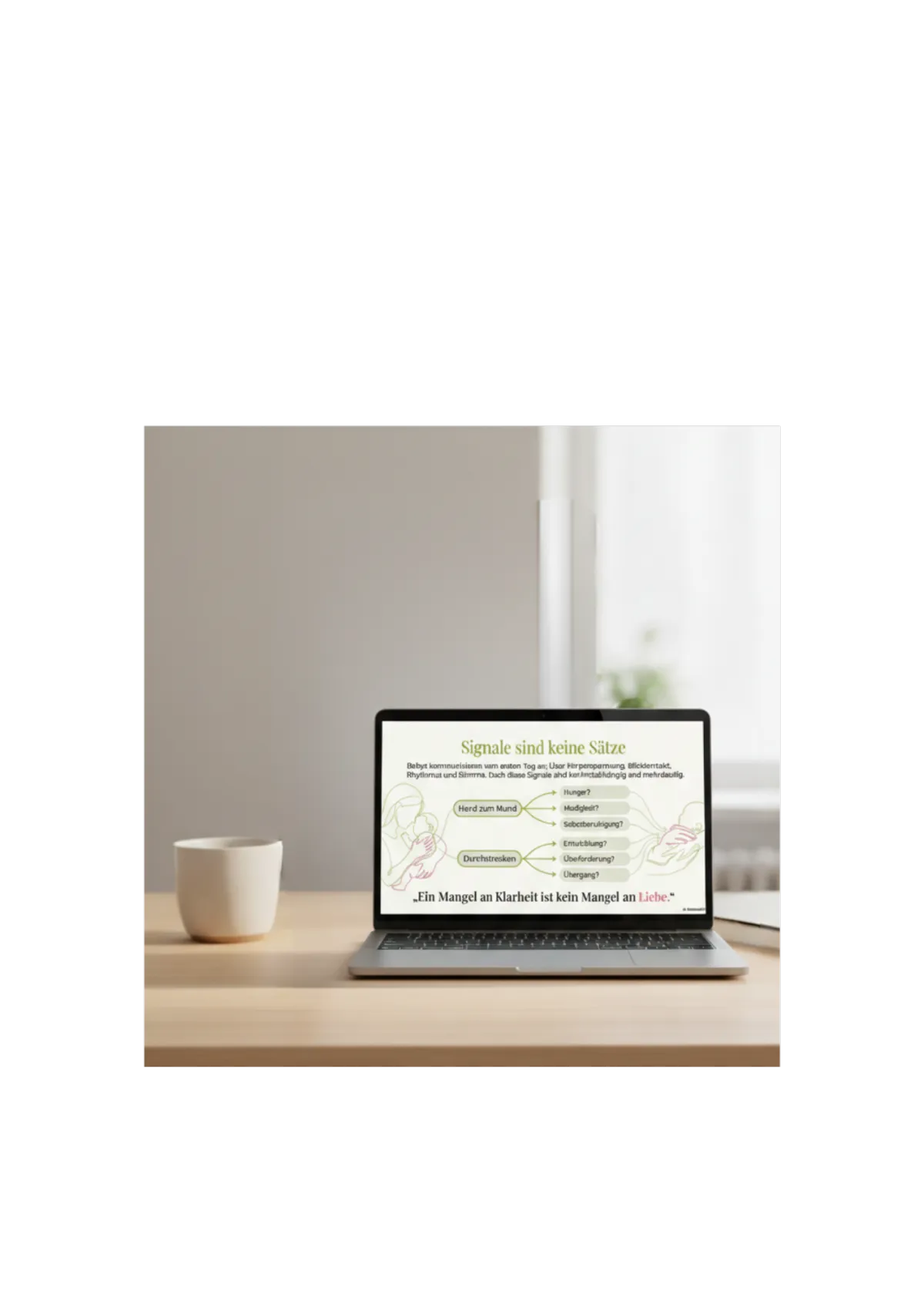 Sobald du das PDF erhalten hast, lies es dir in Ruhe durch. Damit bekommst du einen Einblick in die frühe Kommunikation und mehr Klarheit im Umgang mit deinem Baby.