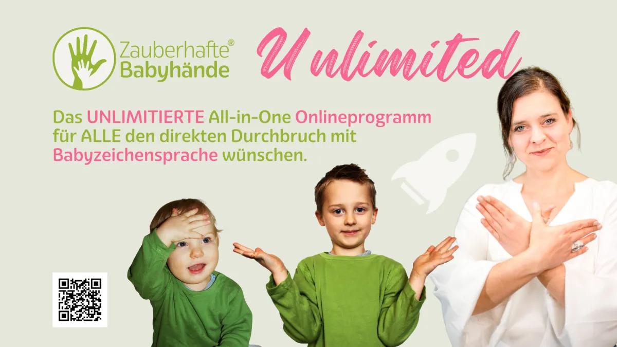 Zauberhafte Babyhände® UNLIMITED ist ein strukturiertes Online-Programm zur frühen Kommunikation mit Babys zwischen 6 und 18 Monaten. Es verbindet Babyzeichensprache mit der Ganzheitlich-Intuitiven Kommunikation (GiK) und begleitet dich Schritt für Schritt dabei, dein Baby bewusster zu verstehen und Missverständnisse im Alltag zu reduzieren.
